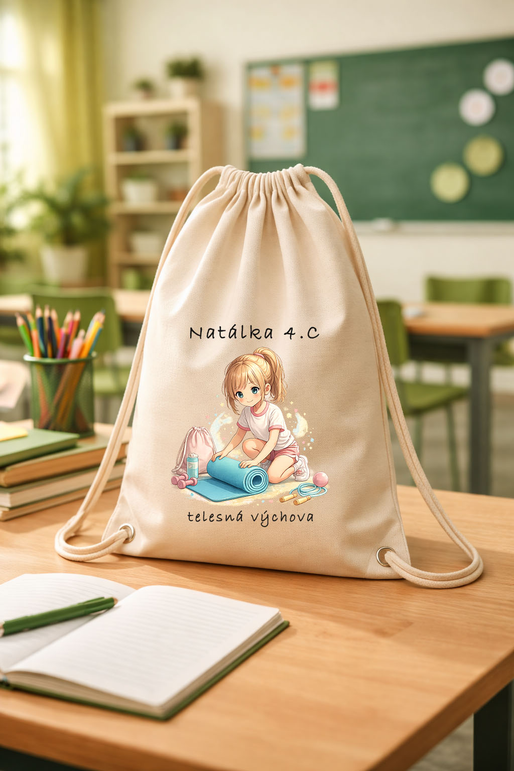 Vrecko na telesnú výchovu potláčam vlastnoručne vo svojej dielničke. Preto je tento produkt možné personalizovať. To znamená, že keď mi pri objednávke napíšete do poznámky, e-mailu alebo SMS správy, aké meno a trieda by mali na ňom byť potlačené, vybavím to :) Materiál: 100% bavlna Farba: prírodná Potlač: kombinovaná