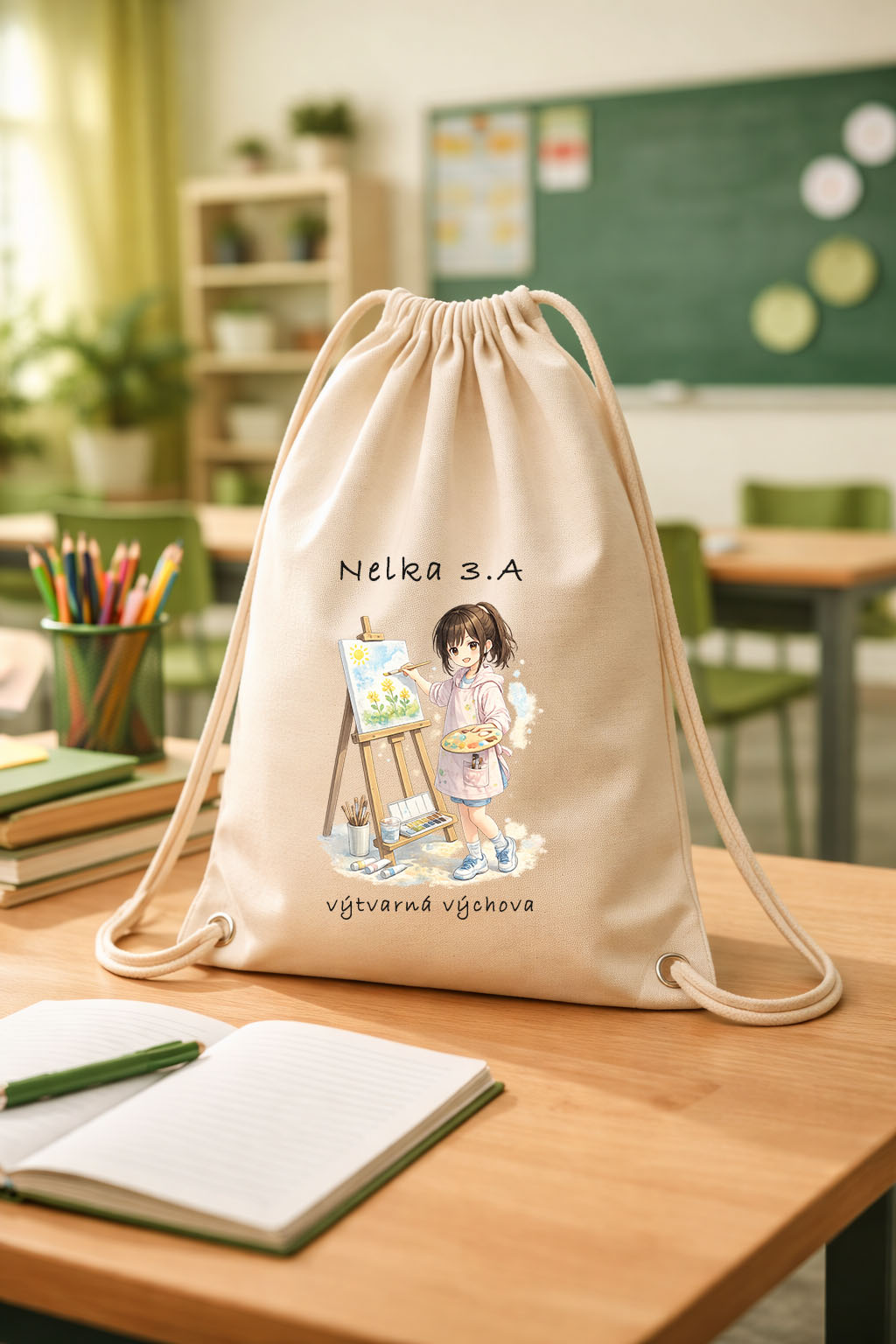 Vrecko na výtvarnú výchovu potláčam vlastnoručne vo svojej dielničke. Preto je tento produkt možné personalizovať. To znamená, že keď mi pri objednávke napíšete do poznámky, e-mailu alebo SMS správy, aké meno a trieda by mali na ňom byť potlačené, vybavím to :) Materiál: 100% bavlna Farba: prírodná Potlač: kombinovaná