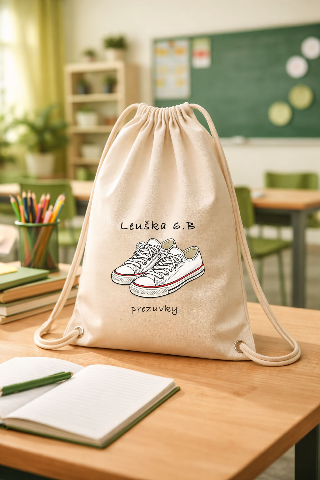 Vrecko na prezuvky s personalizovaným menom a triedou. Pri objednávke ma kontaktujte e-mailom alebo telefonicky, a všetko spolu doladíme. Materiál: 100% bavlna Potlač: kombinovaná Starostlivosť: ideálne prať naruby na jemnom praní bez aviváže